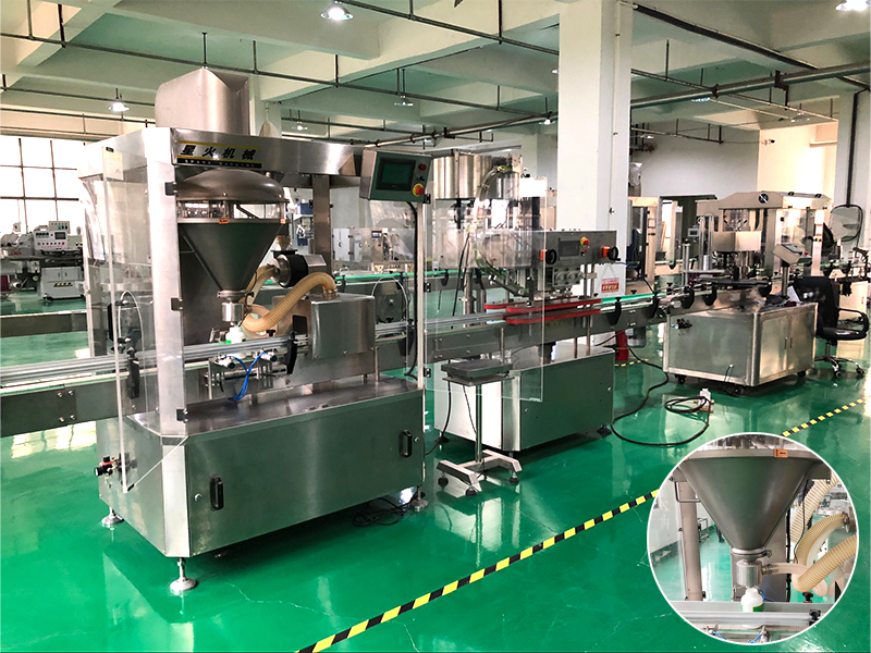整套粉劑灌裝機生產線主要是由:吹瓶機、輸送機、灌裝機、旋蓋機、除塵器、貼標機、裝箱等眾多機械設備組成,它能夠針對各種粉體物料的智能化灌裝工作。整套粉劑灌裝機生產線集機電氣為一體,自動完成粉劑的供料、計量、灌裝以及旋蓋的工作模式,完成高品質粉末物料灌裝。