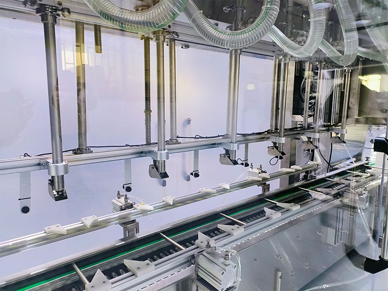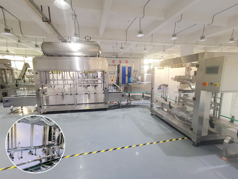 1、自動上桶、定位,全自動化工桶灌裝機通過滾筒線,可自動將空的容器桶送至灌裝工位,燃油再由氣動夾桶裝置,進行自動夾緊并精確定位操控。