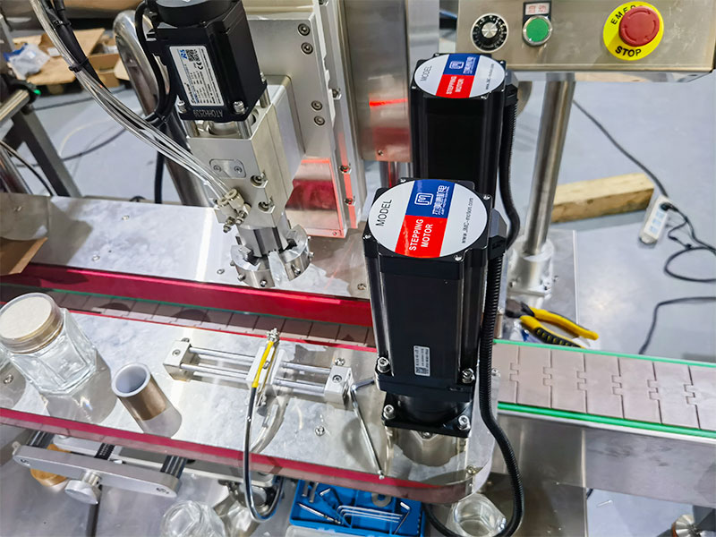 蜂蜜灌裝機旋蓋生產線整體運作模式采用PLC+HMI智能操作原理,通過一鍵式便捷式的操作,可提高蜂蜜從原材料直至成品輸出全部工序,操作人員僅需在觸控屏上選擇相對應的生產規格,蜂蜜灌裝機旋蓋生產線可自動開始投產,為了確保灌裝食材的安全性,這一整套機械設備全部采用不銹鋼材質打造,不僅擁有良好的密封性和耐腐蝕性,還可以延長設備的長久使用期限,蜂蜜灌裝機旋蓋生產線啟動后,振動電機帶動篩網振動,使的蜂蜜快速通過網篩,經過篩選后的蜂蜜需經過加熱才能保持流動狀態,以便于后續的灌裝,在進入投產工序時,理瓶機開始自動整理雜亂的瓶子排列程序,輸送帶則會帶動瓶子進入灌裝區域,在灌裝區域內紅外感應控制器將會實時檢測瓶子的進出,檢測到容器口時,灌裝頭下降,已經被提煉好的蜂蜜將會在全封閉式的狀態下快速充填進瓶、旋蓋、貼標的生產工序。