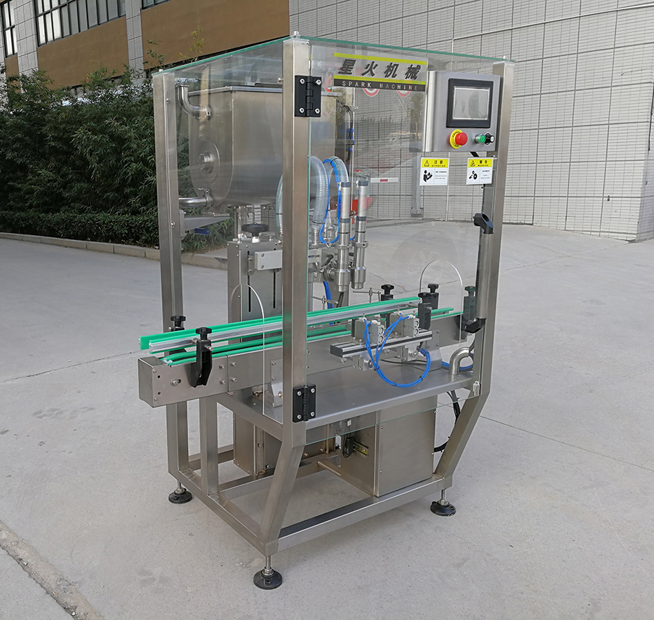 該機適合灌裝顆粒類醬料,是全自動辣椒醬灌裝機和豆豉醬灌裝機通用設(shè)備,目前在國內(nèi)屬于比較先進的灌裝機產(chǎn)品,他的產(chǎn)生解決了以前辣椒醬廠家需要大量人力才能完成灌裝的難題,并且提高了產(chǎn)品的灌裝精度。該機和物料接觸部位全部采用316L不銹鋼制成,動力使用臺灣亞德客氣缸推動,整機干凈大方、動力強勁,使很多客戶順利解決了醬料生產(chǎn)企業(yè)QS認(rèn)證。